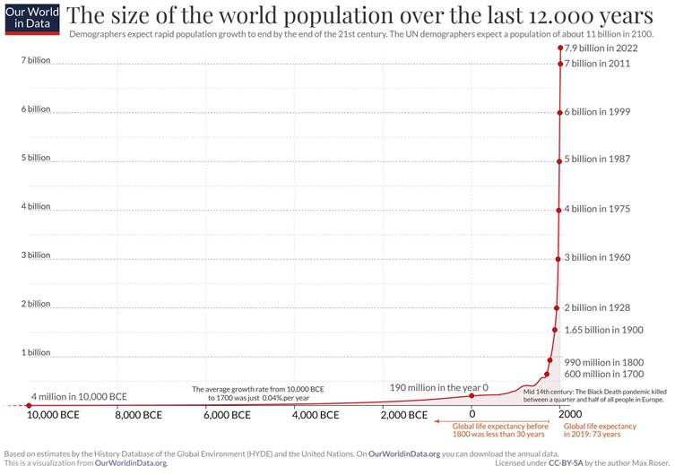 Figure 2 illustrates the exponential growth of the human population since the industrial revolution.