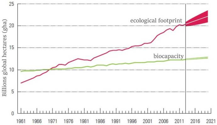 Fig 1: World biocapacity and ecological footprint (1960-2012) (Source: WWF 2016)